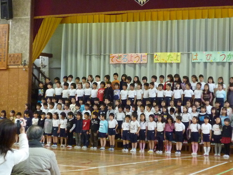 「できるようになったよ発表会」と題して、今年の成長の成果を発表します。空は前から2列目の左から2番目。黒いトレーナーです。