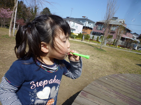 これまた久しぶりなシャボン玉。風が強くてふっとんでいっちゃったって。