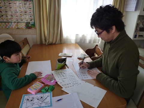 今日は真吾の親友ふいちゃんの結婚式。ご祝儀袋に書くために名前を猛烈練習中。空が心配そうw