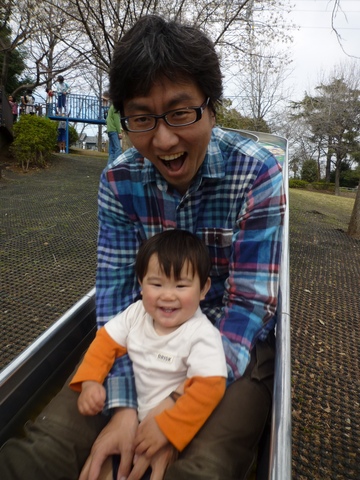 せっかくの気候を楽しむべく岸根公園へ。すべり台楽しそう♪