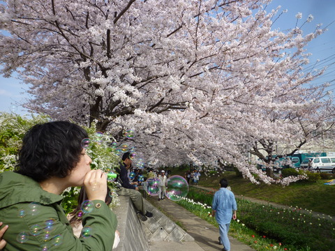 きれいかなー、と思って持ってきたシャボン玉。あんまり上手じゃないけど、私、シャボン玉好きなんです。