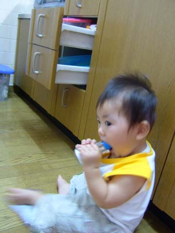 最近、離乳食じゃ塩気が足りないんだよねぇ〜。ちょっと補給しとこ。