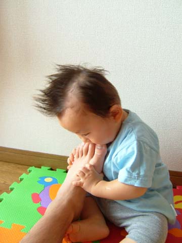 こんな頭にしたお父さんなんて噛み付いてやるぜ!オ〜イェ〜!