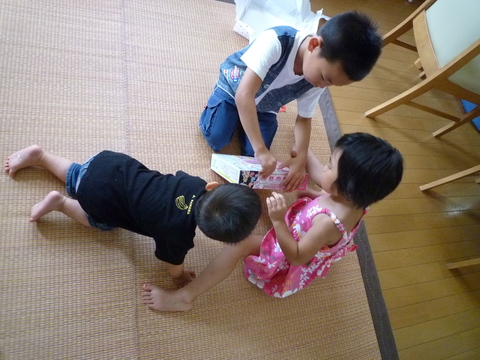 やはり異常に真剣なギャラリーが2名。ああ、もう、手出しちゃダメってば。