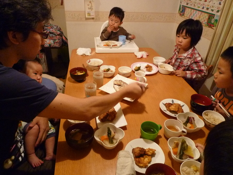 今日は寿のお食い初め。尾頭付きの鯛に栗ごはん、煮物、お吸い物、でお膳を調えました。