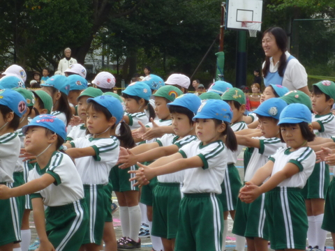 中央、緑の帽子に虹がついてるのが凪です。びしっと並んで、さすが凪。