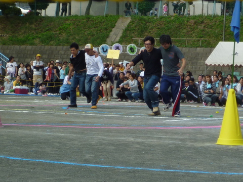 2人3脚。お相手のお父さんもがんばって、スターターはなんと1位でたすきを渡しました。