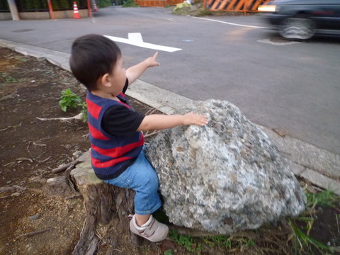 切り株と岩でできた新のマシン。目前を横切った車に警告音出してますw