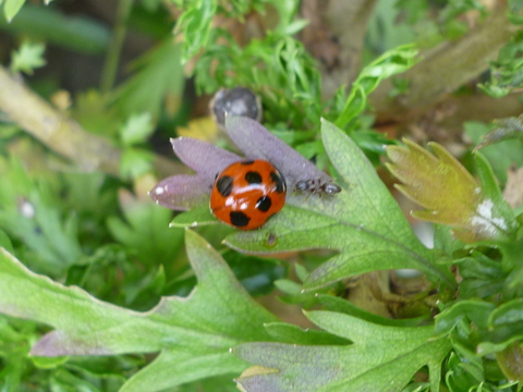 よく見ると、テントウムシVSアリの攻防戦が繰り広げられていました。