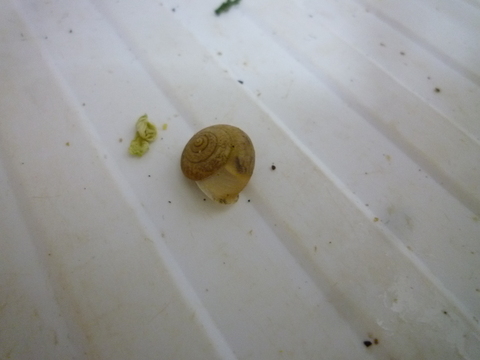 冷蔵庫の野菜室の底でコロンとひとつカタツムリ。