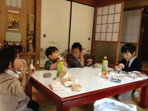 お墓参りの後は、さきさんのお宅へ。そして、さきさんが不在なのにご飯を広げる、というw