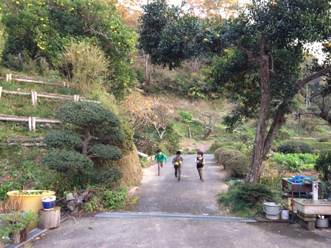 外遊び服に着替えて外へ。これがしたくて来たんだもんね。