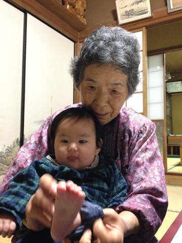 ほどなくして帰ってきたさきさんの膝で、寿は得意のぺろり。