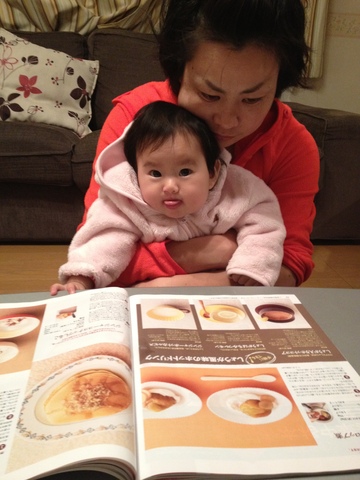 オレンジページ見ながらぺろりぺろり。もう食べたくて仕方ないみたい。