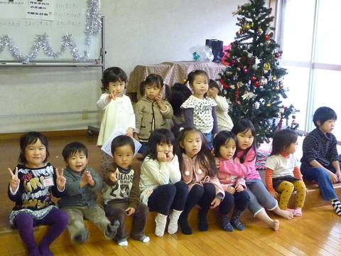 今日は町内会館のツリーに飾り付け。飾り終わったところで、みんなでパチリ☆