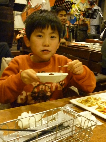大好物だけいっぱい食べられる、空の大好きバイキング。デザートはチョコバナナ。