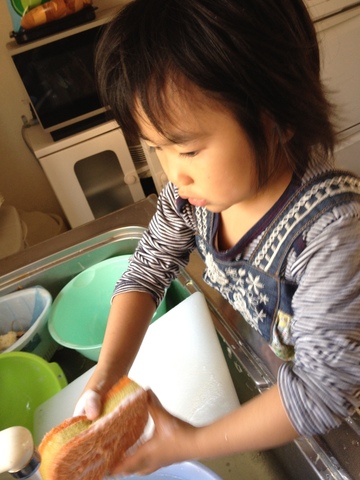 食器洗いしたい、っていうからさせてみたんだって。今後とも頼むよ。