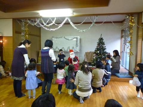 今日はつみきのクリスマス会。なんと一足早くサンタさんがプレゼントを届けてくれました。