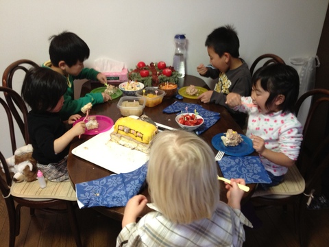 「みんなー。どうじょー。」ってみんなに勧めてから食べるの。この年齢からパーティーのホストって自覚があるんだね。