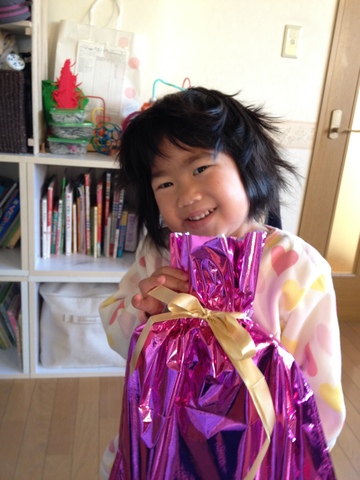 プレゼント持っていそいそとあがってきました。よかったね♪