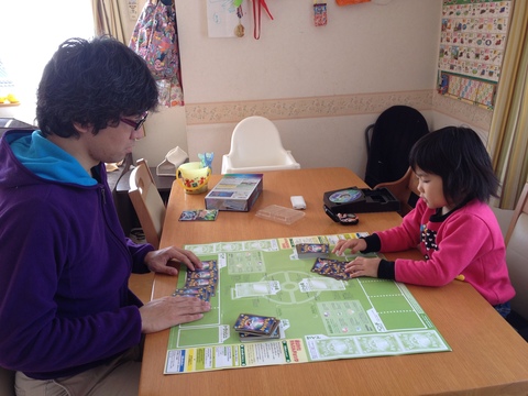 宝のもらったカードセットを使ってバトル。見たことないカードがたくさん入ってて最初はルールを追うのも大変。