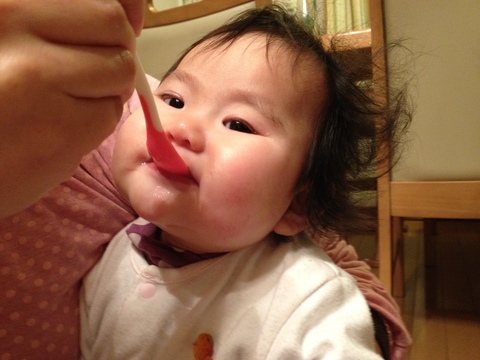 サンタさんにもらったごはんセットで離乳食をスタート!まずは重湯から。