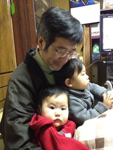 続いて、さきさんのお宅へ。息子さんの作太郎さんがいらっしゃいました。2人揃っておひざへお邪魔中。