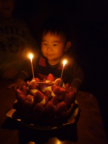 みんなに歌ってもらって満足げな表情。よかったね。おめでとう。