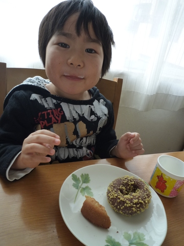 ドーナツうまし。牛乳がひげになっとります。