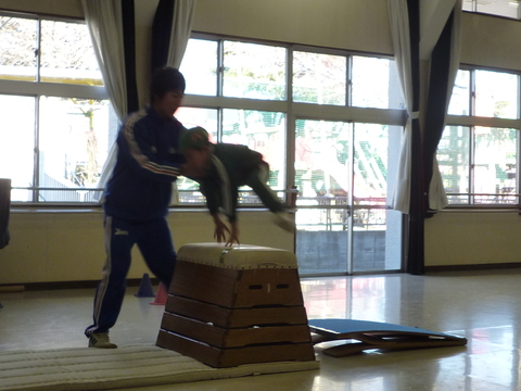 あんまり何回も飛び越しちゃうので、凪だけロイター板の位置を遠くに調整してやり直し。今度はきれいに跳べたね!