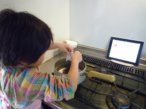 今年も手作りチョコを作ります。ipadで作り方を見ながら作業中。