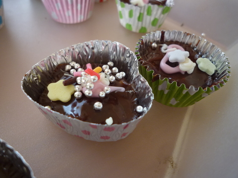 チョコは紅茶風味の生チョコです。上にトッピングでデコるのが今年風。