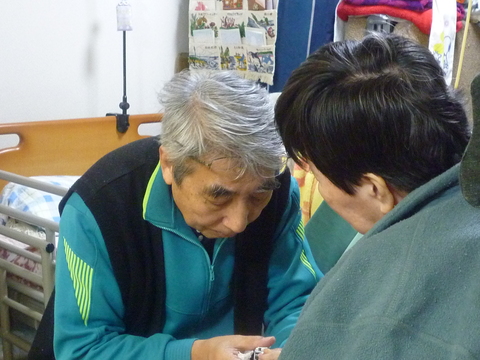 爪を切ってあげたり、休みなくお世話をするおじいちゃん。
