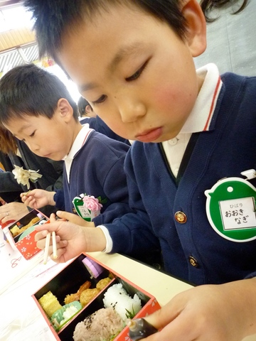 食べなれないものが詰まった松花堂弁当。緊張のあまり、醤油さし持ったまま食べてますw