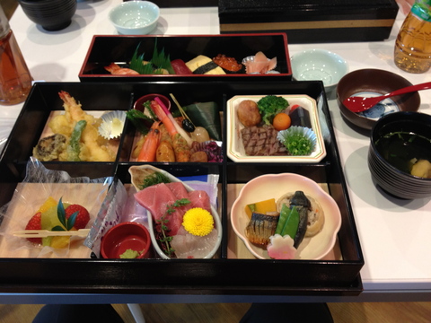 ランチ懇親会のお弁当。くじ引きが当たって、超高級弁当だったそうな。いーなー。