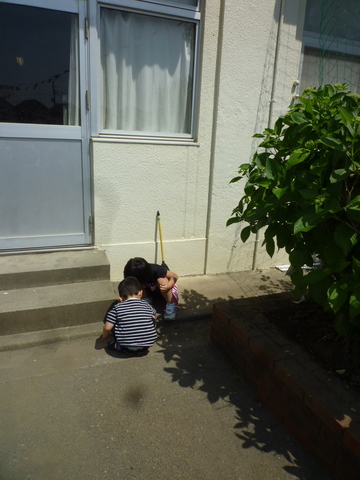 たくさんいる児童の中から凪を見つけるのがまだ難しい2人は、すっかりアリ研究隊に。