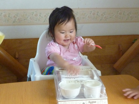 一日早いけど、今日は寿の誕生日パーティー。両親からは、飯碗やコップが入った食器セットを。これからたくさん食べて大きくなってね!