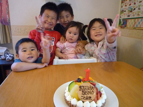 ケーキを前に