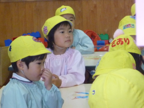 今日は幼稚園の参観日。いわゆる「父の日参観」です。見られてるのを意識してか、やや緊張気味。