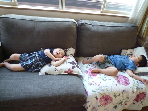 えー、いつものフォーメーションのようなのですが、私が寿の頭の位置を逆にしてしまったのです。というわけで、この後、新に蹴られた寿がまだ眠いのに起こされてひと悶着・・ごめんよ・・