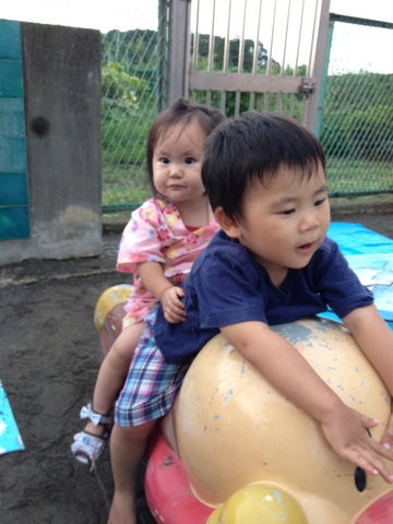 花火までまだ時間があるので、とにかく遊ばせます。幼稚園は遊具がたくさんあるからいいね。