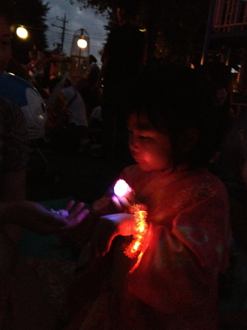 光るおもちゃでした。女の子と男の子、中身が違って、女の子は指輪とブレスレットだったよ。(男の子はピストル型だった)
