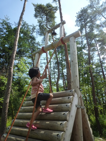小学生が対象らしいアスレチックですが、ぐいぐい進んでいきます。