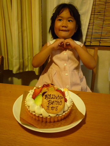 今年は宝のリクエストでフルーツタルト。好みも年々変わるね。ハートで記念撮影。
