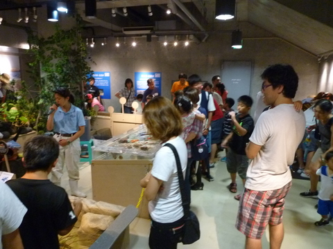 自販機とプレイスペースがあって小さい子を連れた人しかいなかったイルカプール横の地下。久々に行ったら、タッチングプールに変わってました。この人ごみ!