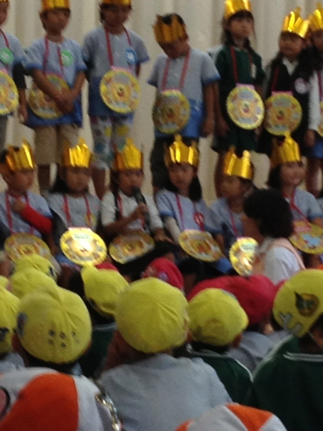 ひとりずつ自己紹介をするのです。「好きなおやつはチューペットです」と言っている。