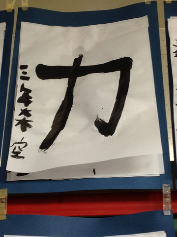 こちらは空のお習字。筆は右で書くのだそうで、苦戦の後が見え隠れ。意外と上手じゃないか。