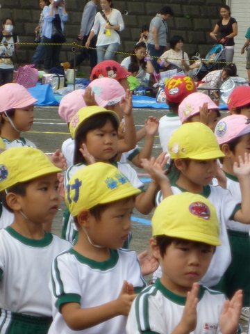さあいよいよ運動会の始まり!整列する宝の顔がやや険しくてどきどき。