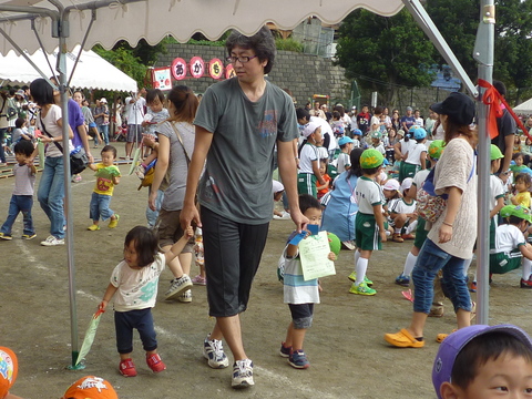 ゴールで待っていた年長さんにおみやげをもらったら、機嫌が直った寿さんw休憩中の宝を見学する余裕までw(おいw)
