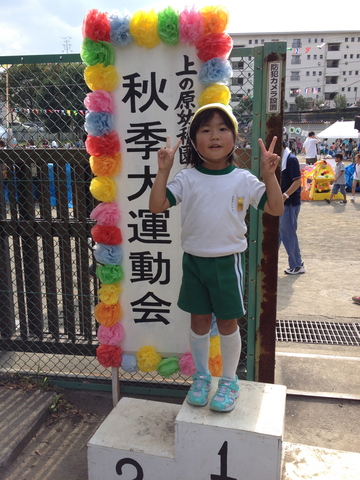 1位の表彰台で記念撮影☆金リボンが光ってるねぇ。